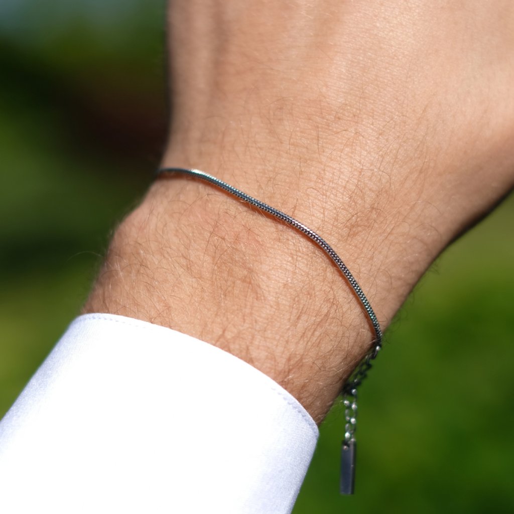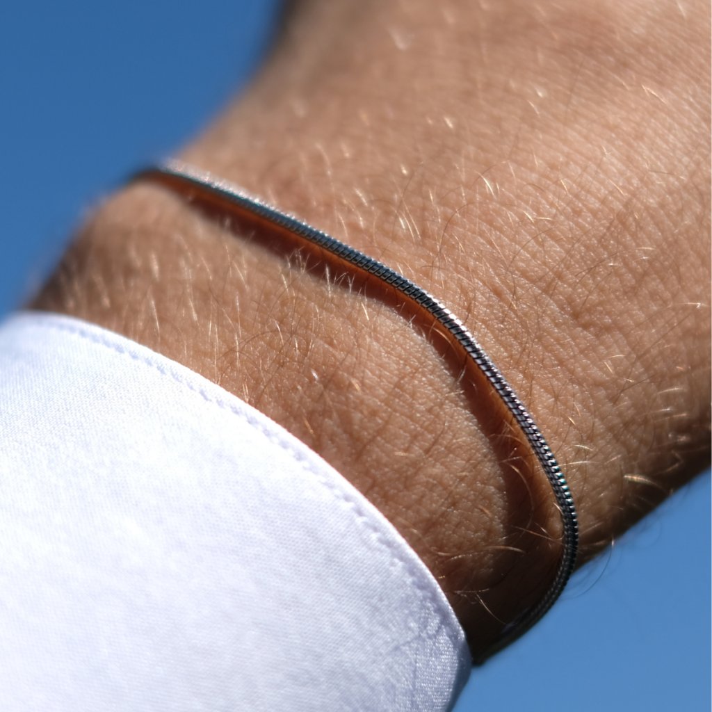 Pánský náramek Box "Snake" má nastavitelnou velikost a díky tomu padne na jakékoliv zápěstí. Unikátně tvarované články náramku jsou poddajné, pohodlné a zakončené elegantním přívěskem Box. Můžete si vybrat mezi stříbrným a zlatým provedením. Náramek můžete sofistikovaně vrstvit s dalšími náramky "Wire" nebo "Classic" z kolekce Box, případně náramek doplnit o stříbrný náhrdelník Box. Náramek je vyrobený z chirurgické oceli a je zakončený bezpečným zapínáním na karabinku. Materiál je voděodolný a při pravidelném nošení nikdy neztratí barvu, nezreziví ani se nezlomí.