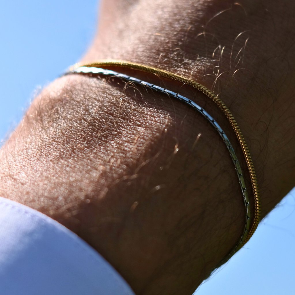 Pánský náramek Box "Snake" má nastavitelnou velikost a díky tomu padne na jakékoliv zápěstí. Unikátně tvarované články náramku jsou poddajné, pohodlné a zakončené elegantním přívěskem Box. Můžete si vybrat mezi stříbrným a zlatým provedením. Náramek můžete sofistikovaně vrstvit s dalšími náramky "Wire" nebo "Classic" z kolekce Box, případně náramek doplnit o pozlacený náhrdelník Box. Náramek je vyrobený z chirurgické oceli a je zakončený bezpečným zapínáním na karabinku. Materiál je voděodolný a při pravidelném nošení nikdy neztratí barvu, nezreziví ani se nezlomí.