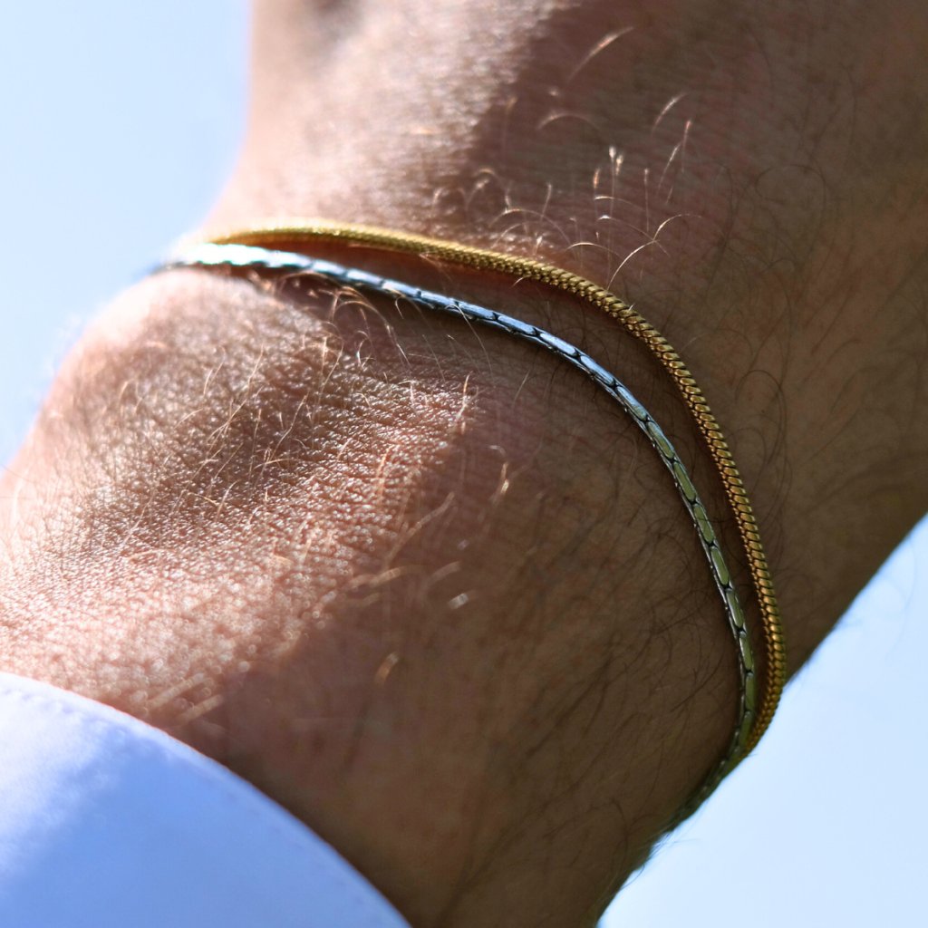 Pánský náramek Box "Wire" má nastavitelnou velikost a díky tomu padne na jakékoliv zápěstí. Unikátně tvarovaný design řetízkového náramku je zakončený elegantním přívěskem Box. Můžete si vybrat mezi stříbrným a zlatým provedením. Náramek můžete sofistikovaně vrstvit s dalšími náramky "Classic" nebo "Snake" z kolekce Box, případně náramek doplnit o stříbrný náhrdelník Box. Náramek je vyrobený z chirurgické oceli a je zakončený bezpečným zapínáním na karabinku. Materiál je voděodolný a při pravidelném nošení nikdy neztratí barvu, nezreziví ani se nezlomí.