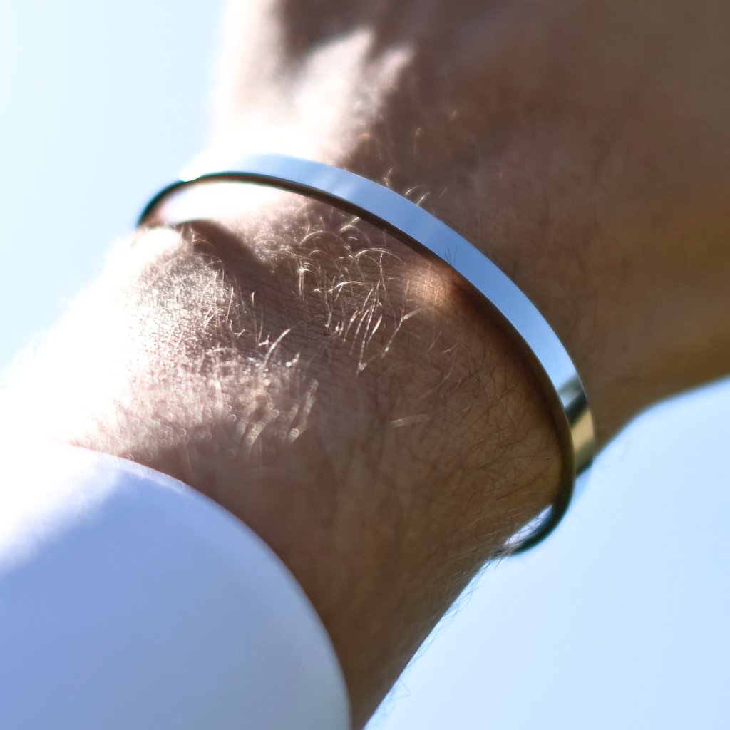 Pánský náramek Harmony má nastavitelnou velikost (One Size) a díky tomu padne na jakékoliv zápěstí. Moderní, hladký design širokého náramku evokuje čistotu a klid. Můžete si vybrat mezi stříbrným či zlatým provedením, případně náramek kombinovat s dalšími šperky a vytvořit si svůj unikátní set nadčasové elegance. Náramek je vyrobený z chirurgické oceli ve dvou šířkách 5mm a 4mm. Materiál je voděodolný a při pravidelném nošení nikdy neztratí barvu, nezreziví ani se nezlomí.
